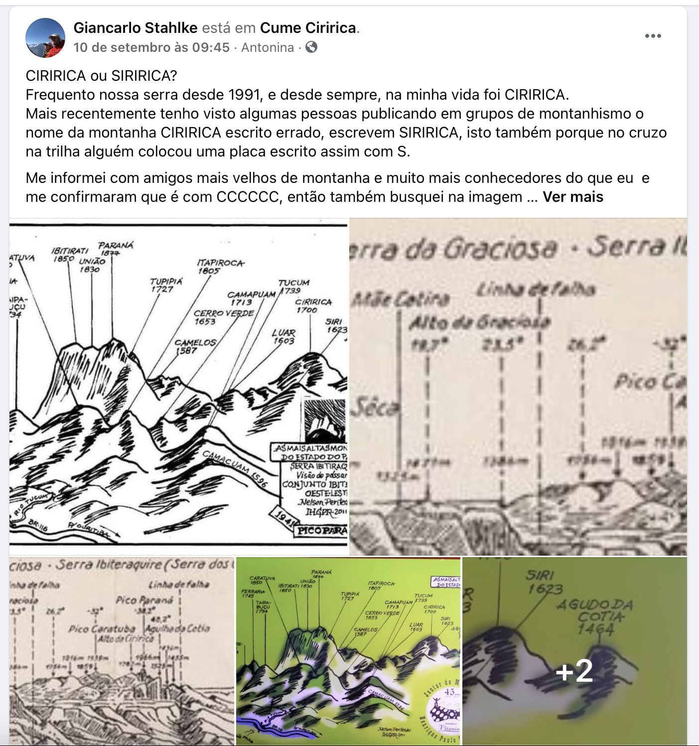 Bem, minha postagem não é uma afronta aos autores do texto de maneira alguma, apenas deixar aqui registrado o que achei sobre a origem do nome desta Montanha, eu particularmente gosto da ideia do Siririca com S pelo fato referente a Siri, pois se você olhar essa montanha ela parece sim um formato de Siri, pelo menos na minha cabeça maluca haha, o que pode ser apenas uma sugestão da mente… mas eu fiz uma montagem do que eu vejo quando olho esse pico.